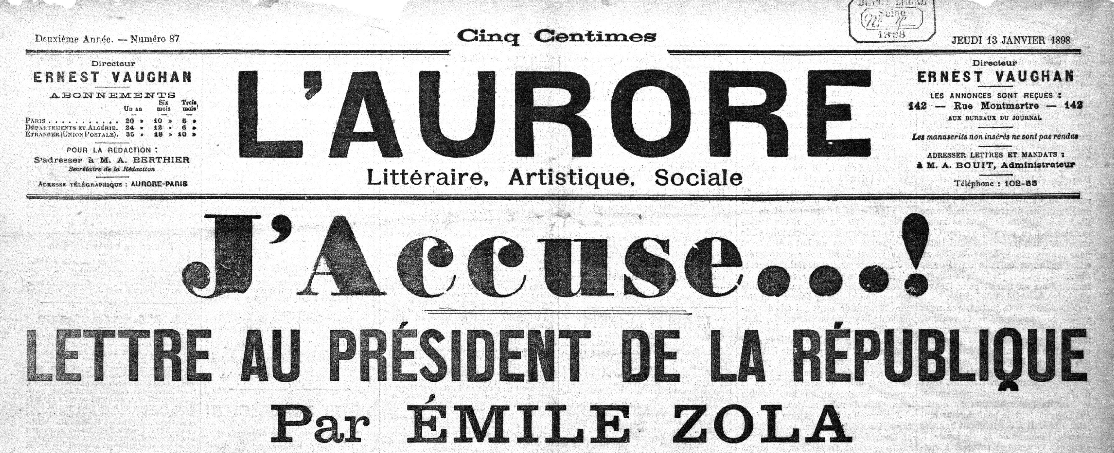 “I have only one passion, that of light, in the name of humanity which has suffered so much and which has the right to happiness.” So concluded J’Accuse, Emile Zola’s 1898 attack on the French judicial, military, and political establishment. His purpose was to expose the serial perjuries and forgeries that led to the conviction, for spying for Germany, of army Captain Alfred Dreyfus. Zola railed against official corruption and deceit, but also against the antisemitism of those who framed Dreyfus, the hatred that Zola saw as threatening not only to Jews but to the entire nation. “When a society is there, it decays,” he wrote.